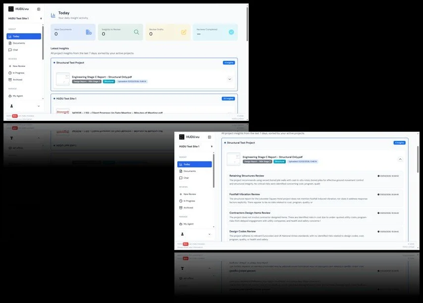 HUDU.vu delivers value from day one. Our expert-informed AI Agents review your project documents immediately - then, as your team builds on their findings, your organisations own expertise becomes part of the process
